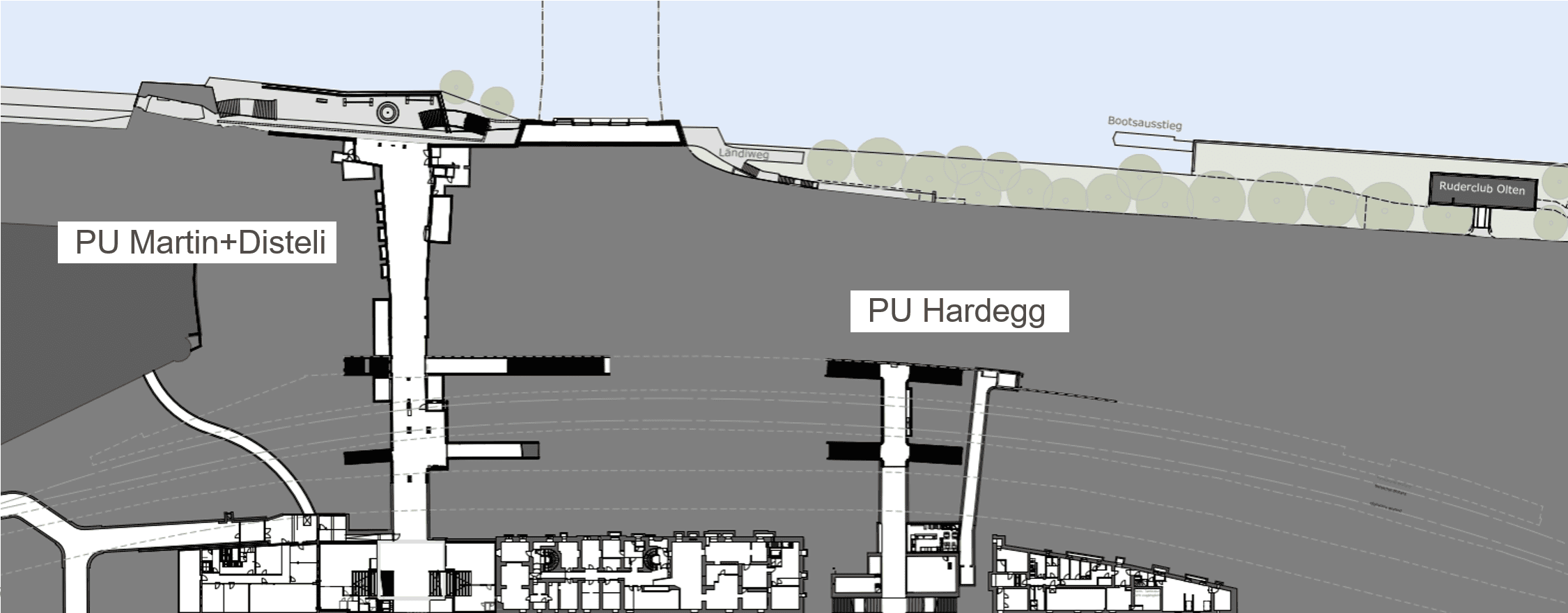 Im Rahmen des Projekts «Neuer Bahnhofplatz Olten» (NBO) wird der aareseitige Bereich im und um den Bahnhof – zwischen dem Perron 1 und dem Aareufer – neu geplant. Der Fokus liegt auf der besseren Erschliessung des Bahnhofs aus Richtung der Innenstadt, der Aufwertung des Aareraums sowie der Entlastung des Bahnhofplatzes. Dadurch werden die Verkehrsflüsse entscheidend optimiert und die Aufenthaltsqualität nachhaltig gestärkt. Zugleich wird die Zentrumsfunktion des Bahnhofs für Olten stärker betont – als Ort der Begegnung, des Ankommens und der Verbindung.